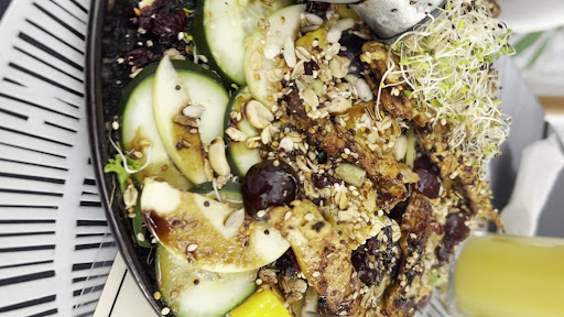 Read moreMe encanta este lugar. Suelo ir en repetidas ocasiones a desayunar o comer, anteriormente estaban en zona Diamante. Si vas a desayunar, te recomiendo el sándwich con tocino caramelizado, la porción es generosa. Los chilaquiles, los puedes pedir ambas salsas, me gusta la combinación del queso de cabra, la cebolla morada, y lo demás, pero en lo personal yo prefiero los chilaquiles bien remojados, estos son más crujientes, la porción es muy generosa. Los hotcakes esta súper ricos. Para la comida el salmón y la combinación con las semillas y salsa es exquisita, quedas satisfecho; el mismo platillo con pollo también es rico. La ensalada es abundante y buena combinación de sabores, las aguas del día exquisitas. Los jugos son ricos pero no son tan naturales como el resto de sus ingredientes, ahí podrían mejorar esa parte. En las mañanas, a veces es recomendable reservar si van varias personas. Si es tu cumpleaños, te regalan un poste con velita. La decoración es muy armoniosa y hay mucho contacto con la naturaleza, los asientos quizá podrían ser un poco incómodos. El servicio es bueno, pero son pocos meseros y toca...