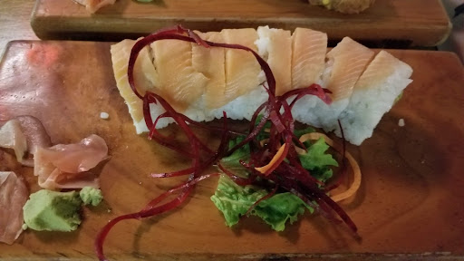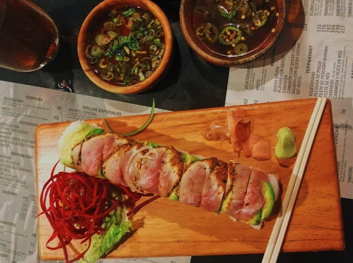 Service is really good. Sushi roll are big 10 rolls, but they should be smaller with bigger piece of fish inside. Seems that they are extending the length but reducing the fish inside. California roll is just a piece of crab you can get in a bag at the grocery store and tasted like it. Ixtapa roll, was good, but the piece of sallmo was very small inside. Spicy tuna roll not sure it was tune inside, didn't seem right was not served with spicy sauce. Seems they don't have the Japanese red spicy sauce I didn't bithbo to ask. If you order 3 rolls and sashimi they should come all at the smes time, but they were serving them one roll at a time, not the way sushi should be served. Tuna thick Sashimi (140 pesos) were extraordinary fresh, very very good, and a very good size plate. They have the most fresh fish around here they should serve the best sushi around the world it was just not the case.... If you stock to Sashimi you should be...