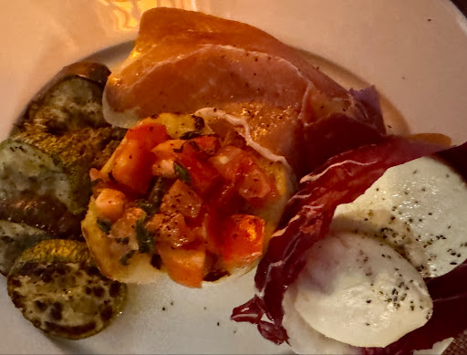 Cesar was outstanding!! He was so friendly and helped us with menu suggestions. His good humor and ability to make us feel special made this a great Christmas dinner. We loved our appetizer. The Antipasti del Forno was perfection on a plate. The mozzarella , the grilled zucchini and eggplant, the bruschetta, and the perfect slice of melon with prosciutto was so balanced and the flavors played well with each other. Every bite was delicious. We had Spaghetti allá Nettuno and Spaghetti Ruschetta for our mains. They were delicious. The wide variety of fish in the Neptuno along either side the sauce made an outstanding dish. The Ruschetta with artichoke hearts, black olives, spinach and a buttery white wine sauce was delicious! We rounded out dinner with the chocolate candies studded with dried fruit and nuts served with a scoop of vanilla ice cream. It too was beautifully presented...