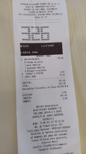 El servicio en este lugar es pésimo pedí unos refrescos de 4 vasos con un paquete de pollo mitad receta cruji y tradicional.por solicitar que quería puras piezas piernas y pechuga tuve que pagar $15 pesos adicional del costó total del paquete.solicite 4 refrescos más de vaso y estos me los cobraron aparte no apareció el costo en el ticket los refrescos que me sirvieron eran 4 vasos de Yoli y 4 vasos de sidral.el primer sabor era pura agua carbonatada con hielo en vez de Yoli como es posible que vendan vasos de agua carbonatada con hielo en vez de yoli.que no están al pendiente de su jarabe cuando se acaba y siguen vendiendo...