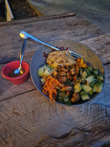 This place is a hidden gem! We have been in Saladita a week and we were craving some good food. We saw this place online and headed over to try it out. We were greeted by our server Carlos who was so sweet and great! The environment was very nice too, cute string lights and surf films on a projector. Carlos explained everything on the menu and we really loved talking to him, felt like we were chatting with a long time friend! Then the food came and it was amazingâŚthey have some pescatarian burgers options and we tried the shrimp and fish one- SO GOOD! The chocolate cake at the end was chefs kiss đ¤đ˝. This place had awesome food, some epic surf films to watch, relaxing environment, great staff (Carlos!!) and just good vibes - we really enjoyed our evening there. Will...