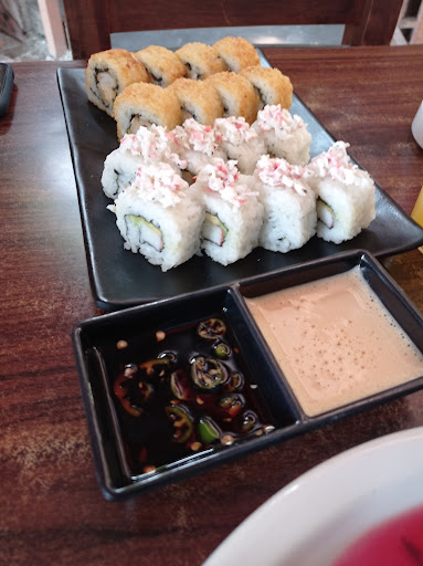 Lugar que tiene un buen sabor en todos sus platillos, las sopas son exquisitas y alcanzan para tres, la de solo dos personas, (depende cuanto coman) pero si están bien servidas, platos fuertes son muy buenos y también grandes porciones, algo pobres en cuanto a las carnes y muy sustanciosos en vegetales, me atrevo a decir que no es caro en relación a su sabor, pero si podría ser mejor, el servicio en general es bueno, los baños están limpios, las instalaciones se ven limpias, tardan un poco pero es normal los platillos son hechos en el momento. El sushi, está muy grueso en sus cortes, es bastante arroz para el centro, se desmorona no es agradable comer un sushi en partes, y si bien lo que se quiere es ser vastos que se agradece en este platillo, podría ser más largo, así como su salsa de soya podrían ponerle un toque de cítricos, me encantó el aderezo de mayonesa se lleva muy bien con el sushi, la naranjada le faltó naranja está insípida, en cuanto a su preparación creo que sería bueno que le dieran un poco de celeridad, ya que terminaron todos mis acompañantes su plato fuerte y no llegaba mi rollo, recomiendo el té helado, es muy bueno. Por cierto, me agrada la idea de poder llevar tus recipientes para la comida que sobra o para llevar la comida a tu casa,...