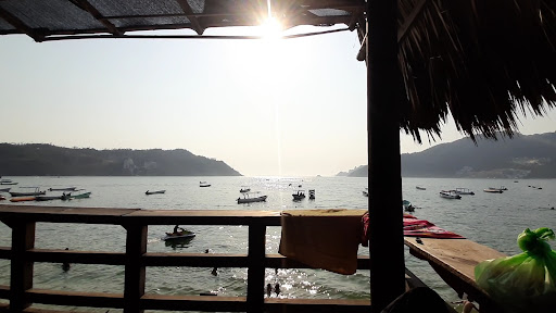 Ofrecen 3 tipos de paquetes, el de 450, el de 500 y el de 550 en mi caso el de 550 este incluia desayuno y comida una vuelta en lancha y una vuelta en la banana, el DESAYUNO hay 2 opciones o chilaquiles con pollo o huevos cualquiera de estos con frijoles y rodajas de bolillo a mi parecer muy pobre la porcion esto se acompañan de refrescos de lata o vasos de naranjada sason y sabor regular,COMIDA mojarra frita ,en varias preparaciones o milanesa de res o filete empanisado con frijoles arroz ,verdura y tortillas la comida con un sazon de 10 muy rico hay dan refrescos de 350 ml mi califacion se enfoca mas en servicio aunque como tal no hay malas caras ni tratos el servicio es muy,muy,muy tardado mi visita fue expres de un dia llegue como 7:30 am y desayune 9:30 a esta agregenle que tenia hambre y pedi un cafe a la carta CON COSTO EXTRA pero me dijeron que NO HABIA TAZAS Y QUE TENIA QUE ESPERAR A QUE ALGUIEN DESOCUPARAN UNA PARA PODERME DAR EL MIO, EL CAFE NUNCA LLEGO eso si al llegar te cobran es lo primero y dice el refran mariachi pagado toca mal son y pues ya pagaste y por mas que pidas te dan largas y si te quieres ir por que hay muchas pero muchas mas opciones para comer pues no puedes por que ya pagaste despues del desayuno el tomar la lancha y la vuelta en la banana pues se va mas de medio dia. La comida la sirven a las 4 segun ellos pero pues como asta las 5 o 5:30, lo bueno TIENE UNA VISTA ESPECTACULAR Y COMER CON EL MAR DE FONDO ES INOLVIDABLE ,podras tomar postales hermosas, cuidado por que aunque las mesas de adelante en la comida ofrecen vista espectacular el sol es inclemente. Las regaderas son al aire libre son 2 a un costado de la escalera cuenta con 5 baños mesas a...