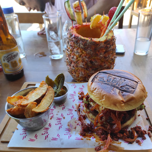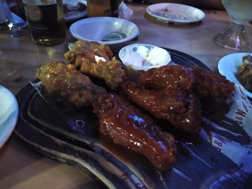 Es un buen lugar para comer, las hamburguesas son buenas, pero las alitas son aún mejor, (las bbq un poco acidas para mi gusto), pero hay gran variedad de sabores de los cuales recomiendo mucho las habanero y las búfalo, las bebidas un poco alto el costo pero por el buen sabor de la comida es un precio que estoy dispuesto a pagar. El lugar es muy agradable, (fresco) y cómodo, la música es buena, pero podrían mejorar, el servicio por parte de los meseros es bueno, pero podría mejorar, se me hace un poco elitista, a esepcion de dos: un señor gordito pelón ( sin el afán de ofender ya que no se su nombre) es a todo dar veo que llega mucha gente y lo saluda, y el otro es Omar, muy atento el hace sugerencias de la comida es un punto a favor ya que los clientes nuevos no saben que pedir en mi caso no sabía si las alitas habanero picaban mucho por ellos regresa la gente, los otros meseros hace falta capacitación ya que su servicio es mediocre, aclaro no es malo pero si elitista. Saludos y espero...