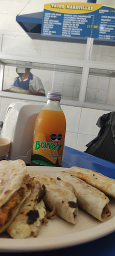 Read moreSi lo que buscas son tacos de guisado, los Tacos Maravillas es una excelente opcion, cuentan con una gran variedad de guisados que van desde chiles rellenos hasta los tradicionales de requesón, mole y frijoles. Aguas frescas de diferentes sabores y refrescos. Como es un lugar céntrico es dificil encontrar estacionamiento (si vienes en coche ) ya que no cuenta con uno propio. El servicio es excelente con un personal que te atiende amablemente y con una sonrisa. Aquí se pide por taco y vaya que están bien servidos, los precios van desde $13 pesos...