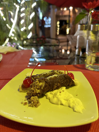 Us: Family of 6. Felt like Italian because when you have 3 teens and a tween who are Mexican-fooded out, Italian is a safe bet. A charming courtyard with crushed white rock for the floor, umbrellas and string lights. Really great atmosphere and ambiance. Tables really spread out -- you didn't feel cramped. We ordered salad, 4 appetizers, 7 entrees, and 8 desserts so we got a decent sampling of the menu.