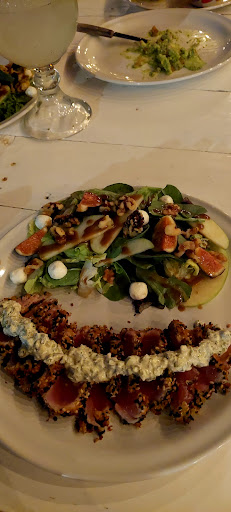 Phenomenal dinner. Elevated toes in the sand. Baja style fish tacos were perfectly prepared with a lovely slaw and surprisingly fresh honey mustard combo. Also not overly breaded/fried. Garlic butter mahi mahi was delish with pesto pasta, apple salad, and sautéed veggies for sides. And the tuna tar tar will have you coming back for lunch over and over. Great drink menu too. Vino to boot. Great lighting, friendly pack of doggos and...