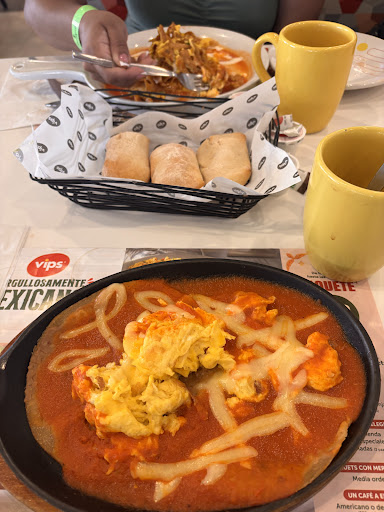Comida bien como cualquier Vips de México, (sin aire acondicionado, para ser Acapulco), pero "la mesera fatal" el tiempo de espera y atención de la mujer, lo peor que vivimos en Acapulco y México. Al sentarnos mi esposo me dijo te amo mucho, en inglés, La mesera puso cara de molestia y dijo claramente "hay no entiendo su inglés" (no le habíamos dicho una sola palabra a ella, y ya nos estaba juzgando que hablaríamos otro idioma, obviamente lo que mi esposo me dijo a mi cara, no fue para ella), y su actitud tan descarada y sin disimular era abierta hacia nosotros, fue discriminación al turismo. Mi marido siempre es educado y generoso como buen Inglés o Británico. Si estamos en México, se dirije siempre en español a los demás y yo obviamente igual, la mujer casi aventando los cubiertos y atravesandonos su brazo para dejar mantel y carta. Después de 30 minutos, sólo llevó mi pedido, y bebidas que no pedimos, literalmente no le sirvió nada a mi esposo, al minuto 45 pensamos en cancelar, ya que solo estaba a carcajadas de extremo a extremo del lugar jugando con sus compañeros que si atendían otras mesas, y otros comensales solo volteaban a verla, luego un hombre vino y cambio las bebidas, yo dije preferimos retirarnos, tenemos 45 minutos y no le han servido nada a mi esposo y dijo ¿cómo cree? No!!! espere!!! aquí está su plato, disculpen porfavor!!!. Estuvo (atrás de nosotros en su estación de café, tras unas plantas, todo el tiempo servido, y ya frío, la mujer se puso a platicar y solo olvidó ahí los platos) obviamente no comería yo sola mi sopa Azteca con el esposo mirando. Para cuando vimos el resto de lo que ordenamos, ya toda la comida era fría, una remojada y otra re seca, así que pagamos ( por consideración al personal que cocina) , y por primera vez no dejamos la propina por atender bien a los clientes. (Propina que fuera de América, como varios saben, es ofensivo sugerir siquiera en tener que pagar a alguien para que demuestre más capacidad y educación; al hacer el trabajo para el que se contrató y por el que ya percibe dinero, en esos lugares no tocan el dinero por dignidad, en América es distinto y se respeta también). En fin mi esposo me dijo fue mi culpa porque dentro de nuestro hotel tenemos muchos restaurantes muy lindos y la gente es extremadamente servicial y bella, pero decidí venir al centro de Acapulco y conocer un poco del lugar y mira a dónde te traje, ahora pidamos un taxi para ir a otro restaurante. Se que no fue su culpa, la mujer destrozó la imagen del servicio en Acapulco centro, de restaurantes Vips., Es pésima actitud de una mujer adulta, que discrimina al turismo " principal fuente de ingresos en su estado", y no valora tener un trabajo, con el desempleo que sufre Guerrero, a nosotros no, nos afecta comer en un lugar local pequeño o modesto, si es limpio y de buen trato o en lugares como el Bentley de Londres, o otros grandes sitios en otros países, finalmente la gente no es grande por su cultura, cosas materiales, apariencia, nacionalidad, idioma, o color de piel,...