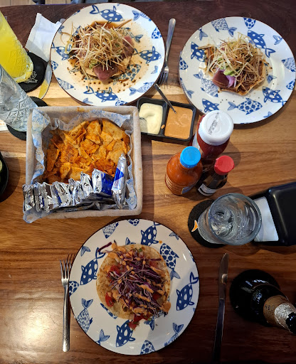 Read moreNo tuve que esperar mucho para que nos dieran mesa es un lugar amplio aunque los baños solo son dos y si tienes que hacer fila, el servicio todos fueron amables y muy atentos. La comida es buena aunque creo que el precio por taco o tostada es algo elevado. Esta bien servida y lo totopos que te ponen al inicio con chilito están muy ricos! Puntos malos: Pedí un taco gobernador de pescado y cuando me lo llevaron percibí un olor extraño, lo revisé y era de camarón (soy alérgica) así que lo regresé y cuando me lo devolvieron solo cambiaron la carne y me pusieron las mismas verduras (contaminación cruzada) y solo me dijeron "Una disculpa se equivocaron porque se ven iguales" (?) Creo que deben tener mucho cuidado porque alguien confiando en el alimento que le sirven y le dan otra cosa a lo que es alérgica puede resultar...