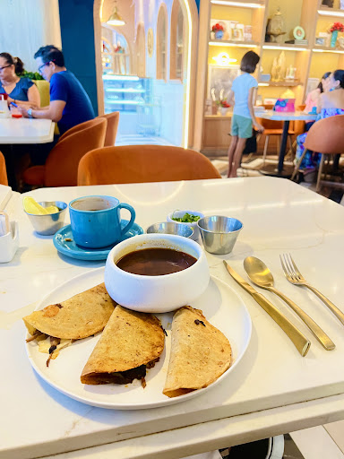 La comida está muy rica, es la tercera vez que voy al restaurante, los precios están en el rango de este tipo de restaurantes, tienen un excelente pan. Sin embargo, el día de ayer que fue mi tener visita, fuimos a desayunar, pedimos entre otras cosas 2 órdenes de chilaquiles, como acompañamiento huevo, le dije al mesero que quería el huevo revuelto y si podría separarlo en 2 platos, lo cual me dijo que no había problema, para los segundos chilaquiles se pidió huevo estrellado. Al momento de servir no llegaron los huevos estrellados, así que lo hice ver al mesero, al probar los chilaquiles nos percatamos que unos venían con pollo, lo cual se hizo del conocimiento del mesero pero decidí que se quedarán en la mesa (ya se habían probado, y para mí es un desperdicio regresarlos para que me dieron unos sin el pollo), pero si le pedí que los huevos estrellados me los trajeran, tal como se habían ordenado, el problema fue al momento de pagar la cuenta, si se me hizo muy elevado el precio y al revisarla me percaté que nos cobraron el pollo extra (aproximadamente 90 pesos) y una orden de huevos estrellados también me la cobraron como extra (con un costo de huevos al gusto de aproximadamente 140 pesos), pagué sin problema, pero si me quedé con eso de que fue equivocación de ellos, y sé que probablemente el mesero es el que lo marcó mal y como en algunos lados se los cobran a ellos, tal vez el por eso lo marcó a mi cuenta, pero creo que hay maneras mejores para solucionarlo como que él lo hablara con su gerente, aunque el encargado no el mesero fue el que entregó los huevos estrellados. En fin, me quedé con ese amargo sabor de boca, así que si ustedes van y les entregan algo mal revisen y pidan la rectificación y...