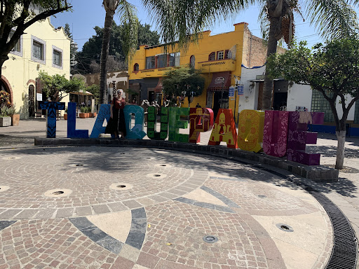 10 ene 7:54 pm salimos a seguir caminando por los portales, llenos de columnas de cantera, venta de barro, artesanías e imanes, por cierto adquirí uno de duende, nos llamo la atención un lugar con buena música que se escuchaba en un restaurante, lleno de luces, colorido total, mesas de madera con sillas de colores llamativos mexicanísimo, se llama 1910 Restaurante.