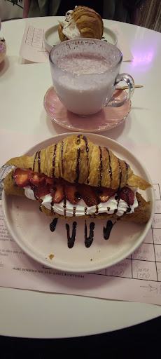 El concepto del lugar es novedoso y cute, un café predominantemente rosa, elegante y decoración aesthetic; sin duda invita a tomarse fotos.