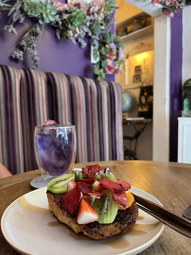 Read moreExcelente lugar! Si lo que quieres es un deleite paraos sentidos, café violeta es tu lugar. Es una cafetería con estilo vintage muy bien logrado. El lugar transmite un ambiente antiguo pero no viejo. Con muchas esquinas bonitas y una combinación de texturas, colores, ornamenta y sonidos muy bien lograda. Su café es de muy buena calidad, con sabores que demuestran el cuidado de los ingredientes y la buena preparación. Esta conectada a la florería de al lado así que siempre huele a flores pero no es para nada empalagoso. La atención es de primera y el servicio es rápido pero sin contagiarte las prisas. No tiene zona para fumar y en ocasiones se siente muy encerrado el lugar. Esta en lo que era una casa antigua así que tiene el techo bajo y muros...