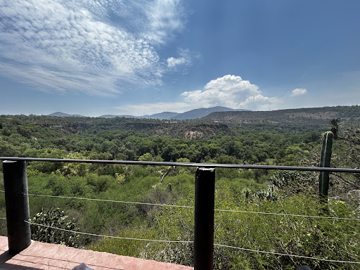 Para los que dieron una mala reseña o no fueron o ningun Chilli les gusta (yo le cambiaría por "embonar" pero es cuestión de semántica) El lugar está escondido pero no tengan miedo de llegar hasta el final del camino pues ese es el atractivo, el estacionamiento es de buen tamaño, tiene 12 mesas pero el espacio es mas grande. En la terraza hay 5 mesas 3 al filo del barandal pero tengan cuidado porque las ráfagas de viento que no son tan frecuentes vuelan todo. No tiene una extensa variedad de comida o bebida pero si tienen todo lo que indican en su carta. Las bebidas muy buenas la comida también muy buena y abundante. Comer en la terraza con esa vista no tiene comparación. La música a buen volumen para poder platicar. En mi caso el consumo promedio fue de $300 por persona en cada comida pero valió la pena cada peso. La atención es algo lenta si vienes del caos de la ciudad pero en realidad si sabes administrar tu tiempo pidiendo primero tus bebidas para esperar tus alimentos mientras gozas las vistas del lugar no se hace pesado. Vayan y disfruten de este lugar. Cuidado con el árbol de la entrada porque deja caer sus ramas con espinas y pueden atraviesa una...