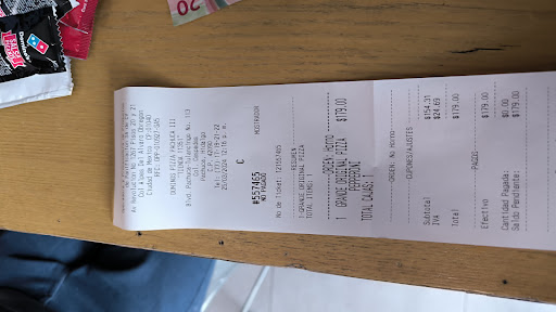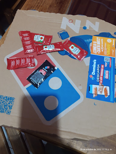 Read moreConozco ciudades donde Domino's está para satisfacer el antojo, y el día de ayer se me dio el gusto de comprar una promoción de dos pizzas grandes, el tema es que después de 32 minutos que solicité mi orden solo recibí una disculpa y nada que satisfaciera la falta de servicio, por lo que respecta al sabor de las pizzas claramente es el mismo sabor que de cualquier tienda y eso mantiene la marca, desgraciadamente la falta de entrega del personal deja mucho que desear, hace falta más conciencia, de que, es un trabajo! Recomendación vallan compren pues uno va por el producto, más no permitan tanto tiempo de espera pues no se respeta ninguna garantía. La pizza finalmente es de buen sabor como en cualquier Domino's. Tu tiempo de espera en mostrador no tiene que ser de más de quince minutos, el exigir mantiene al personal al nivel que...