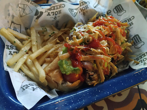 Read moreEn mi búsqueda por lugares que aún no conocemos en Pachuca me encontré con Holy Cheese!, Llegamos y el lugar visualmente es muy agradable, inmediatamente se presentó un mesero y nos indicó que el menú está por código QR, decidimos por unos dedos de queso para la entrada los cuales estuvieron deliciosos acompañados de aderezos. Decidí a probar un hot dog y wow!, Sorpresa grata ya que son buenísimos, probé el Pastor alemán y tiene un sabor delicioso , salchicha polaca con quesos y un delicioso guacamole hasta arriba. Pedimos una pizza Triple Meat, pizzas de masa mad o menos gruesa pero deliciosa, los ingredientes de muy buen sabor y sobre todo con mucho queso Para acompañar pedimos una jarra de clericot, bien preparado y con buen sabor, no se que tipo de vino le pusieron pero suficientemente aceptable . En general un buen sitio para comer o cenar, buena atención, comida rica y...