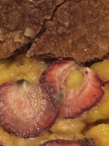 Spoiler alert: lo que llegó parecía un castigo. Unicel blanco del más genérico, fresas con moho (sí, moho 🤢), todo chorreado y un aroma que hizo que el cumpleañero casi devolviera el desayuno.
