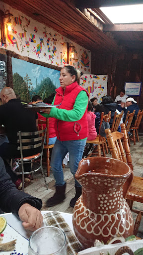 Read moreTerrible experiencia, para no volver por muy bueno que esté. La mujer de la foto llegó portando un chaleco de la secretaría de turismo con un grupo de personas con reservación pidiendo mesa sin importar que habíamos llegado antes e igual que ellos teníamos una hora esperando. Para nuestra sorpresa así fue y se le concedió, el personal amablemente nos acondicionó otra mesa pequeña y la misma señora nos negó la mesa porque otra familia más faltaba por sentarse a lo que nosotros ya irritados le dijimos que corroborara con los meseros y tomamos asiento. Molesta, regañó al personal diciendo "ellos van llegando y se robaron la mesa", se introdujo a la cocina y empezó a apurar a los cocineros. Para nuestra sorpresa, ¡confirmamos que ella es la dueña del restaurante! Como represalia, no nos dieron nuestros platillos hasta que terminaron de atender a cada uno del grupo mientras la dueña les gritaba "¡a qué hora van a acabar!" y además, incluso al pedir la trucha más cara, nos sirvieron a cada uno 2 truchas muy pequeñas cuando el grupo tenía 1 trucha grande por platillo. Al reclamar esto, se notaba la pena del personal pero no de la dueña, quien en este punto ya se había quitado el chaleco y daba su trato preferencial. La mesa de al lado también se quejó de la frescura de la trucha, por supuesto como nosotros, no eran del grupo ni extranjeros para merecer un buen producto. Pagamos y al caminar hacia la puerta vemos como esta señora sin mandil y sin malla para el cabello está pribando un caldo directo de la olla con cucharón y lo devuelve. Trabajar con conflicto de interés en una instancia de gobierno de Hidalgo y tratar a clientes como basura es...