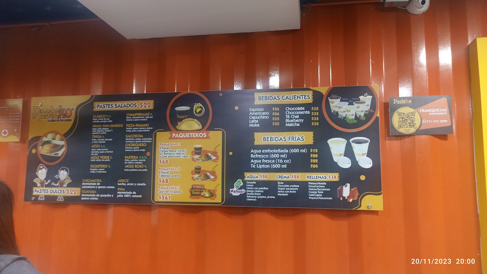 Read moreUn buen establecimiento donde se pueden degustar los famosos pastes, además de paletas, entre otros productos que ahí se comercializan, cualquier paste es muy bueno, así que puedes elegir el que gustes, dese los salados hasta los dulces que son una delicia, en lo particular los recomiendo mucho ya que tienen una atención buena y sus pastes son simplemente ricos, es un platillo que se degustar de manera digamos distinta a otros, ya que se pueden comer ahí mismo o llevar comiendo, lo importante es comerlos y disfrutarlos al máximo, hay muchas sucursales de Pasteko que puedes visitar, todas son buenas y su atención igual, así que ve y disfruta de esta delicia, pero como normalmente lo digo, cada quien tiene su mejor opinión y cada quien su...