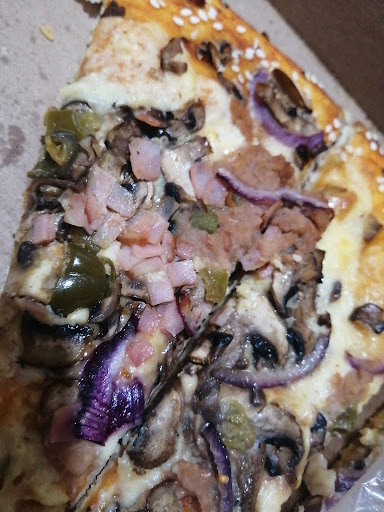 Pedí unas pizzas vegetarianas que llevaban jamón. No sé que tiene de vegetariano eso, después de haber negado que llevaban carne optaron por reponerla con una pizza más chica, les doy 1 estrella por el mal rato que pasó mi familia al darse cuenta que ya habían comido carne. Adjunto evidencias. Actualización, tardó en llegar la otra pizza y venía exactamente igual que la otra, decidí ya no hacer nada, minutos después de la llegada me llamaron y dijeron "Oye, no tenía jamón, es tocino" justificando que así venía en el menú y yo así de -_- Para mi esto es un insulto, porque no se las estoy...