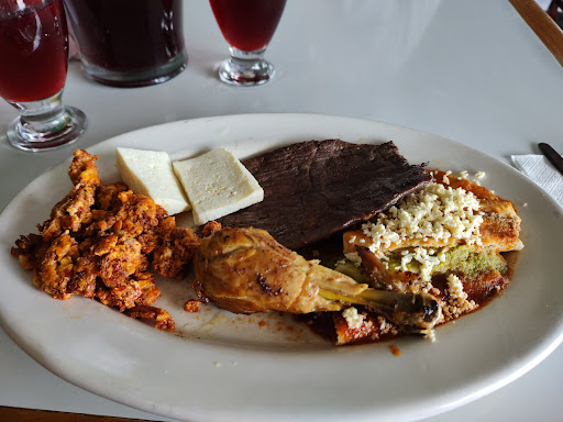 Read morePuros huevos en su menú, la mayoría, caro para dos huevos revueltos con algo más, solo tenían pura agua de Jamaica y refrescos de lata no había agua de otro sabor, mi esposa pidió una agua de naranja y fue a preguntar si la alcanzaban a hacer, en verdad solo ir a este lugar si estás a dieta y quieres pagar caro, eso sí te colocan enchiladas al centro, 4 con refil, para tortillas con chile y poco queso mejor nada, me imaginaba otro tipo de comida, fue decepción. Las enfrijoladas con cecina de mi hija todas secas, una embarrada de frijoles en los platos para acompañar los huevos, saliendo de ahí fui a comer de verdad a...