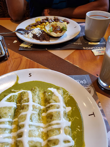 Es un lugar muy bonito, las mesas, la iluminación, los baños, toda la instalación en general es muy agradable a la vista y es muy cómodo el lugar. El servicio fue muy cálido, pero siento que hizo falta más atención. Al haber sido una sola persona sentí que yo era el que buscaba a los meseros, hubo considerable tiempo de espera entre cada una de mis órdenes, pero lo compensa el lugar que es muy cómodo y no te sientes estresado y tampoco es desagradable la espera y también lo compensa sentirte bienvenido cuando te hablan y toman tu orden. La comida es aceptable, pedí unas enchiladas estilo Toks y el sabor no me pareció tan bueno, las cervezas que venden (me parecen artesanales) están muy sabrosas, fui por una promoción de crepas y café, el café fue de moka con chocolate y es delicioso, las crepas de cajeta y helado de Ferrero tienen buen sabor, pero me parecieron empalagosas. Y por último canjeé un cupón de cumpleaños por un pastel que venía en una muy buena porción y también...