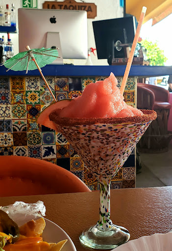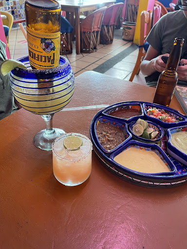 Amazing drinks!! Mine came in a HUGE BOWL w/2 straws, and a glass almost half full with tequila to add in as the shots!! It was SO BIG, they gave me a to-go cup (also pictured and very largewhich I never actually finished).... My husband ordered a strawberry daiquiri, after seeing another drink go by (pictured) bc the drink came out taller than the glass. Muy delicioso!! We only stopped for drinks and a light snack, so we got nachos... but recognized this place as a place recommended by a local we ate at during a previous trip here when they had an all you can eat taco bar (many years ago). They did have some signs on the wall for winning YELP awards, etc., so we knew we were in a great place, plus, locals were eating and drinking there. My drink is listed at the TOP RIGHT of the menu in Spanish, but I didn't catch the name. It was the recommendation if the waitress, so I went with it! I took a pix of the menu to help you find it. It has grapefruit in it and tequila, obviously. Lol...Idk what else was in there but it was fresh fruit, juice, and very good! You might be able to notice by the pictures just how big the serving bowl it came in is by comparing it to the nacho plate, or the salsa serving dish they brought out with the different salsas on it. It was larger than both of those! Needless to say, I needed the nachos to soak up some of it so I could continue on my shopping trip that afternoon and still walk back to our hotel! We will go back! The rest of our party was understandably sad they missed out when they saw the pictures of our amazing drinks and appetizers they missed out on! The rest of the menu looked great too! If we didn't already have dinner plans, we would've gone there that...