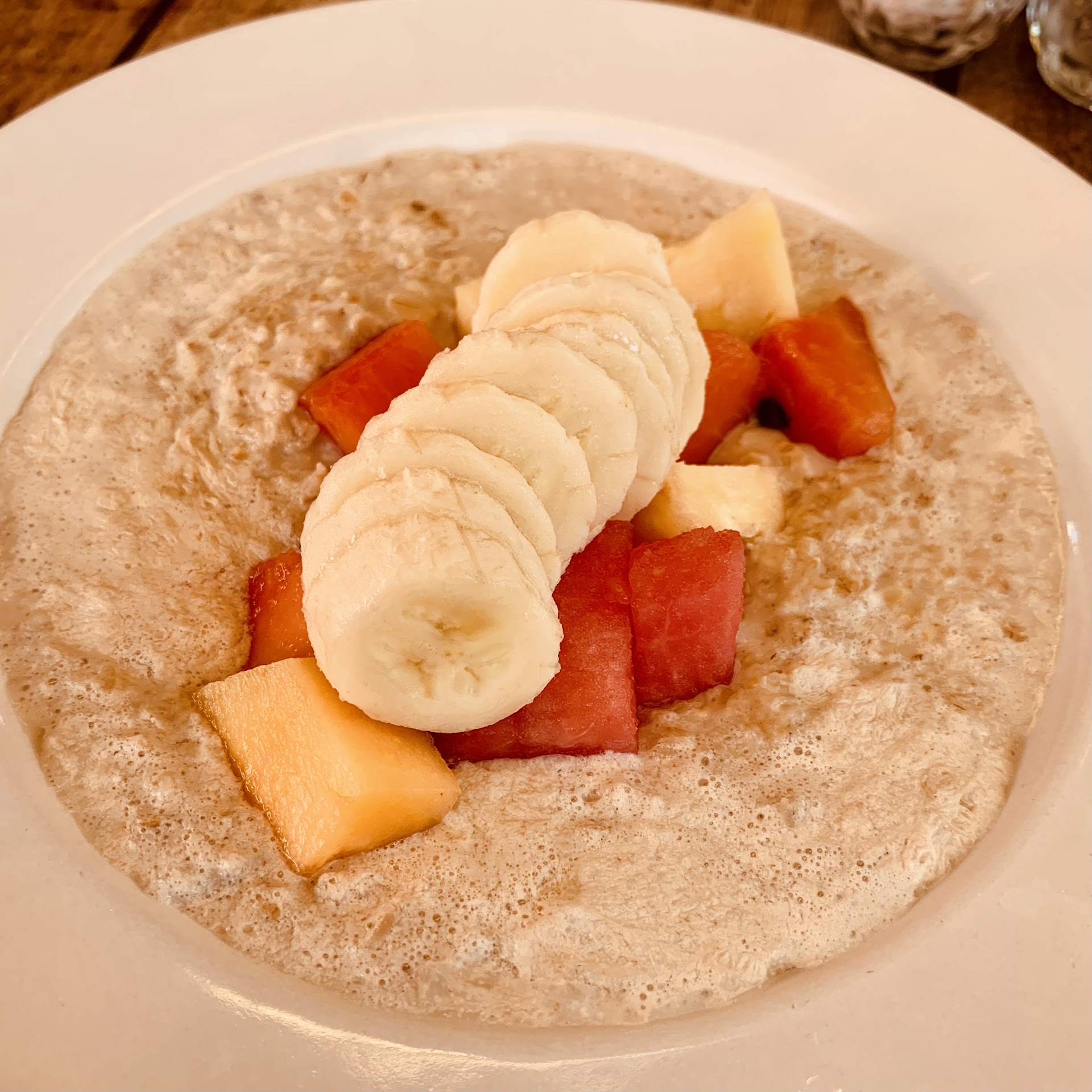 😋Flavor/Taste: I ordered the oatmeal, which came with banana and melon on top. Fantastic! It was a big portion and the added peanut butter (35 MXN) was delicious. However, the oatmeal as such was tasteless - or had a weird aftertaste - I wouldn’t order it again. (curious to know how they make it because mixing oats in milk or water should always has the same outcome. I will give it 3/5 ⭐️