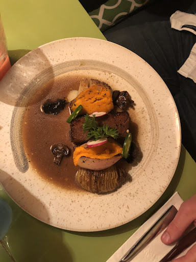 Read moreWe vacation in Isla Mujeres "a lot". Of all the great places to have dinner, this is our new favorite spot. Located mid-island, the staff is exceptionally friendly and attentive. The food is simply... perfect. I had the slow cooked brisket and let me tell you... This is the best dish I have had on the island, after 20 years of visiting here. Served with sea salted mushrooms, roasted potatoes, thin sliced fresh jalapeno and this incredible sauce made from pureed carrots and a hint of habanero. We asked for a little extra sauce and they brought us a 6 oz bowl full. We put it on everything! My wife had the lobster pasta. It was wonderful, but at twice the price of the brisket; I would have ordered two of what I had! LOL Our dinner guest had the catch of the day and this was something special... Perfectly cooked and encrusted in this fantastic olive dust that was both unique and worked beautifully with the fish. We finished it all off with a shared dessert of what they called a banana split. See the pictures for an idea of what it looks like. I am not normally a dessert guy, but daaaamn... Banana bread base that was coated in a caramelized glaze, topped with a mild coffee infused ice cream with a ring of frozen watermelon and jalapeno sorbet! Add a coke, margarita, a glass of sangria and 3 bottles of water and you are all in at $100, plus tip. Great unpolished yet charming atmosphere, this is a perfect romantic...
