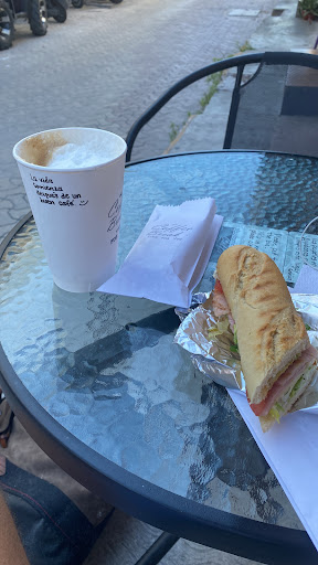 This is a small family run business making absolutely the best coffee on the island!! And so reasonably priced. My husband and I love our coffee. We went here every day, except Sundays when they’re closed, at least once a day. I mean everyone needs a little strong Americano in the morning and a mochaccino in the afternoon right🤷🏼♀️ Or you can just go ahead and order one of each at the same time, just drink the ice blended one first 👍 that there is a pro tip. The owners are absolutely the nicest people ever! Their new location is so wonderful for them, and much better for the customers who like to chitchat. Not that standing in the heat on the sidewalk at their old location deterred me in anyway from chatting them up 😂 but it’s such a quaint little coffee shop. Fun to go in and see the coffee being made. I feel like I’m in Italy. There are a couple of seats inside their air-conditioned shop and some lovely Palapa seating just outside. A real family run business making delicious coffee, pastries and baguettes. You can get a variety of different meat and cheese combinations on their freshly baked baguettes or bagels. It’s not a huge sandwich, just the right size for one person. Or little snacky snack for 2. Again so reasonably priced. You have to wait, because they make them fresh to order. Comes hot off the super legit panini press. If you’re not staying nearby, go ahead and start eating that sandwich right away. You’ll thank me later for that tip! …..We visited in March 2022. So please keep in mind that their menu prices are subject to change. Everyone knows the price of absolutely everything is...