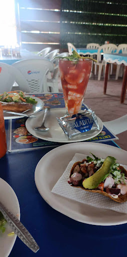 Pedimos un molcajete de mariscos (bastante grande, alcanza para 2 personas) , cazuela de mariscos y un caldo de camarón, el sazón muy rico. Como sugerencia al chef, no deberian de hacer muy picoso el caldo de camarón. Precio accesible para mariscos. Pagamos en promedio 160 por persona (incluyendo bebidas). Sin dudarlo Volvería...