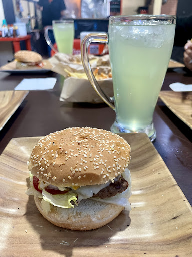 Es un lugar pequeño, pero esta muy rica las hamburguesas, pedi el paquete familiar y estan muy bien las porciones y las papas fritas estan muy ricas, las alas picosas si estan picosas, y las bbq estan ricas, el precio es accesible el paquete de 4personas es de $300 e incluyes dos papas y 4 refrescos.Orden de alas es de $70 cada una. Ofrecen servicio a domicilio pero no se hasta donde sea su alcance. El baño es mixto pero bastante limpio, lo unico que considero pueden mejorar es que las alas son muy poquitas dice la. Orden de 6 pero si lo ves bien solo tedan 3, punto a mejorar y considerar. Les seria si indicaran su servicio a domicilio y que en mi visita estuve en un balneario de la zona y asino me tendria que mover. En lo generar bastante recendables y bastante ricas, precios justos por...