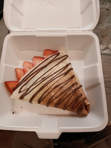 El menú es impresionantemente diverso, ofreciendo una rica selección de opciones veganas y regulares. Decidimos probar la baguette de jamón, que fue sorprendentemente buena y ligera. La crepa que pedimos también estaba deliciosa.