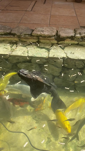 We entered the place through the gate, there was a guarding who confirmed that we could buy coffee. We proceeded to the inner yard and saw a beautiful tiny garden where the cafe is located. The place has a pond with fishes and a fountain, several tables with umbrellas, a counter to order food, a toilet. They even have fans on the walls. The garden has some green plants and many decorations like bird cages, vases, flowers, etc.