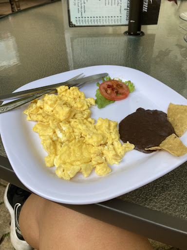 Waitress didn’t speak English which is not basically a big deal but she didn’t even try to understand what we are ordering. I cannot say that she was rude but she was definitely not polite. Cappuccino I ordered was Dolce Gusto capsule. We also ordered American breakfast where bowl of fruit was included. Fruit didn’t seem to be really fresh. Scrambled eggs were alright but it came with some bean sauce which was not good and with two pieces of vegetable. When we were ordering the eggs, we asked if the eggs come with bread (via Google Translator) and the answer was “yes”. Once we got our eggs, there was no bread. We had to ask for it again. We got the bread in “napkin” that was really dirty and I saw the waitress taking it from table next to us!!! Not to mention that the eggs were already almost cold when we started eating. Even though the breakfast was not that expensive, it is not worth the money! You can get amazing breakfast for 50 pesos even in larger and more popular...