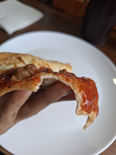 Read moreLa peor pizzería , pedí por aplicación y me mandaron la pizza sin ningún sello de seguridad , la caja venía entre abierta , el repartidor justificó que se aplastó por la bebida , pero peor aún , la pizza sin sobres de catsup , ni de chiles ni nada , así seca , y peor aún mandan los pedidos incompletos , compramos un paquete y solo llegó la pizza con bebida , no saben ni lo que venden ni como dar las cosas , jamás vuelvo a comprar ahí , ni de broma . Y menos cuando las aplicaciones se...