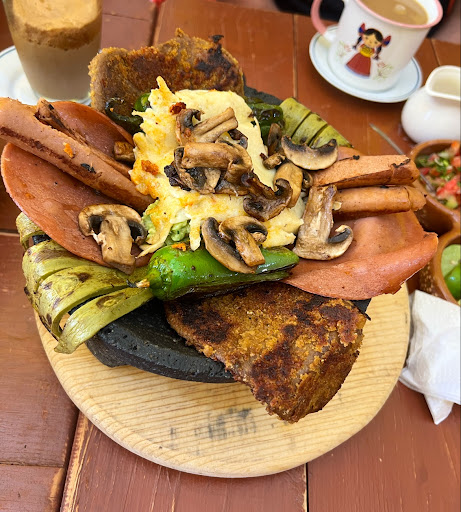 The pizza was the biggest shock—it didn’t look like much when it came out, but it was outstanding. The vegan cheese melted under grilled veggies (including nopales) was just perfect. The tacos were equally fantastic. As lifelong vegetarians, we don’t often see much variety, but here we had three different jackfruit preparations, each beautifully seasoned, plus birria, el dorado, and more. Every bite felt like care had gone into it.