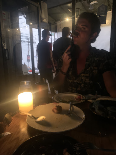 Love this friendly place. We came in frazzled after a stressful flight, which included prolonged turbulence and a medical emergency on board. (Not to mention leaving my wallet in the taxi on the way to our accommodation). We were really too tired to make a selection but Benjamin offered up a small serving of olives, then recommend the spinach salad. He said it was large enough to share, and it was....both large enough and delicious. He also recommended the gnocchi, which was the house special on the night, again saying it was a shareable size offering. I enjoyed mine with a lemonada as I don't imbibe in alcohol, and my wife enjoyed a reasonably-priced cervaza. Our next visit was on a Monday which is when they feature a variety of tapas, artistically put together and displayed. We started sharing the Greek salad before sharing seven of the tapas, which were delicious. We also enjoyed the coconut shrimp, and finished with blueberry cheesecake. Our third visit included summer rolls as an appetizer and the special offering of black pasta with salmon,mwhich we again shared. It was enough for us but if you're really hungry, I'd order one each. My wife enjoyed a generous glass of sangria and I again enjoyed a lemonada, We finished with the cheesecake (made in-house by Diego), and coffees. My wife said that she'll be happy to come back to Puerto Vallarta just to come...