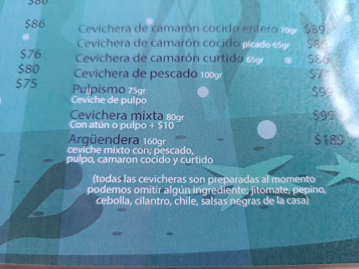 Read moreAyer sábado 18 de mayo acudí con mi familia a comer, ordenamos dos platillos de camarones empanizados , el primer platillo le llegó a mi familiar y en cuanto lo dejaron por el vapor de lo caliente nos menciono que tenía un olor raro, llega el segundo platillo y de igual forma los preparamos para comerlos dándoles una segunda oportunidad y el camarón tenía una consistencia mala al igual el sabor, los 2 platillos de camarones empanizados estaban hechados a perder , se lo mencionamos al mesero y nos comentó que "NO" que en cocina decían que estaban buenos , le dijimos que el por su propia cuenta los probará aparte de que estaban pasadisimos de sal y no fue así, también mi otro familiar pidió una tostada de atún el atún estaba cocido de más, la cebolla y el pepino ya era de días por la textura y presentación, pedimos un agua de pepino con hierbabuena y igual ya era de días por su color oxidado, la ensalada de los platillos la lechuga ya estaba hechada a perder. Se dirigió a nuestra mesa otro señor, dueño o encargado le mostramos los platillos, de una manera amable y discreta para no alarmar a los demás comensales mi familiar disculpándose por la situación penosa y el se ofreció a cambiarnos de platillo lo cual no quisimos por la desconfianza de que volviera a pasar. En la cuenta solo se nos descontó el 50% de uno de los platillos de camarones . Ojalá y el/a cociner@ que tengan preste más atención y más que nada que el marisco es muy delicado . Por mi parte no lo recomiendo y...