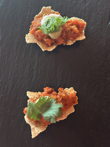 We started out with delicious passion fruit margaritas. She also has a small wine list, which will be growing. The amuse bouche which changes daily was a nice touch. We were presented with a complementary bread basket which turned out to have great heirloom corn tortilla chips paired with unusual salsas. The ceviche tostadas were fabulous as was the pork belly main course.