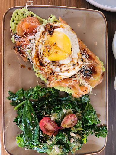Read moreEl lugar está lindo y la comida bien a secas, no me sorprendió ni me encantó, en lo personal me pareció que el aguacate y la ensalda del avocado toast pasado de limón (ojalá el local modere la cantidad que le adicionan porque no todas las personas somos fan del limón) así que si son sensibles a lo agrió lo tomes en cuenta, otra cosa que no me gustó para nada es la cantidad de ruido que hace la licuadora ( también sugiero al dueño adquirir una licuadora tipo vitamix que aislan el ruido, sin duda son caras pero vale totalmente la inversión para mejorar la atmosfera con mucho menos ruído para los clientes), finalmente el café Olla ló, dice que tiene un shot de expreso sin embargo a la bebida le agregan agua así que eso lo convierte de inmediato en un americano así que tampoco me parece clara la descripción de la bebida, que por cierto no me encantó así como el smoothie de chai que está muy dulce para mi gusto. Lo que si les reconozco es el servicio muy servicial. Eso sin ten harta paciencia porque tienen mucha gente en espera y son pocas...
