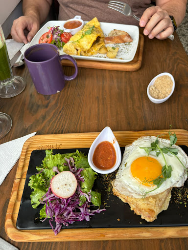 DECEPCIONANTE, somos clientes habituales, , todas nuestras visitas anteriores han sido buenas o excelentes pero está vez, termino mal, sábado 8:39 de la mañana, solo una mesa antes de nosotros, pedimos un volteado de piña, un par de cafés para iniciar, y todo con normalidad buen sabor, cero quejas, lo malo comienza con los platillos, primero unos chilaquiles con huitlacoche, salsa incipida falta de sabor con un ingrediente tan noble como el huitlacoche que se puede potenciar tanto y no lo lograron está vez, cebolla encurtida que sabía fermentada por ser seguramente de un día anterior, a esta hora no puedes tener una cebolla a nada de descomponerse, y menos con tu segunda mesa, los frijoles con un sabor extraño, pero lo peor...el pato 😭, no puedes servir pato desebrado recalentado en la plancha con aceite, parecía chicharrón seco, recomendaría tenerlo en confit para mantenerlo jugoso y con sabor, otro punto súper negativo, no puede ser posible que el restaurante vacío y no servir una mesa de dos personas al mismo tiempo, la crepa boloñesa llegó 10 minutos después que los chilaquiles, de verdad señor@s de cocina deben medir sus tiempos para servir junto una mesa, preferible tardarte esos minutos extras pero que salga junto, caliente y limpio. Lamentablemente no se encontraba la dueña como en otras ocasiones para hacerle mención de estos comentarios en persona por eso lo dejo por este medio esperando que lo vea y corrijan esos detalles porque no quiero perder mi confianza en ustedes, espero que las próxima visita no...
