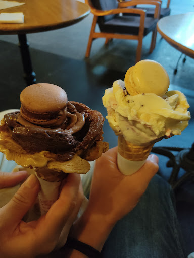 La presentación en la manera que se sirve el helado es bonita, apetecible y distintiva. Los macarrones están dentro de lo que se puede considerar buenos de verdad, son muy suaves y nada empalagosos.