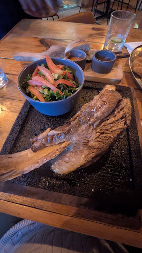 I was craving bone marrow which is what led me here. I was absolutely not disappointed. The restaurant has a nice vibe with an open floor plan and an outdoor section. My server spoke English which is always helpful for me as I like to ask recommendations and my Spanish is mediocre. Brought out complimentary bread and a delicious oil for it. The margarita was delicious, and the bone marrow and the steak were absolutely fantastic. Bone marrow came with tortillas to build your own little tacos. I came a little before the music started, but they do have live music on Fridays! I would highly, highly recommend this...