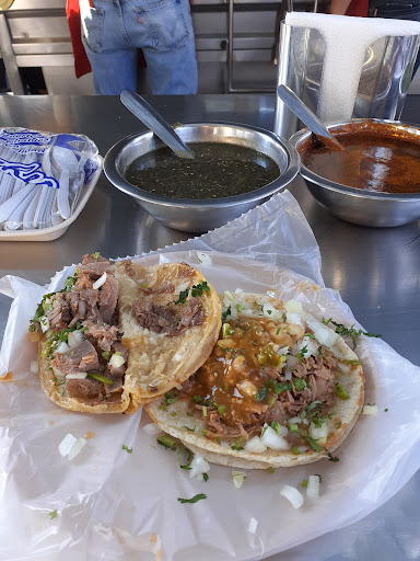Buenos tacos, solo tienen de birria (precio 27 pesos), labio ( 33 pesos) y de lengua (43 pesos) l solo probé birria y labio, los de birria me gustaron más, la carne del labio estaba un poco dura para mí gusto, la próxima ves que me toque ir probaré los de lengua, las salsas están sabrosas especialmente las salsa verde, muy rica no pica pero le da un sabor muy especial a losa tacos, te regalan el consomé que tú gustes, en lo que tendrían que mejorar es en la rapidez de los taqueros, algo lentos para la cantidad de gente que llega a comprar son solo 4 taqueros y se les olvida en qué ficha van y en la atención en las mesas tienes que estar buscando quien te arrime el consomé y...
