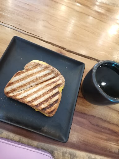 Sobre precios, todo se ve muy accesible. La estética del local es muy armónica visualmente, la paleta de colores con la música de fondo que había cuando le visite me hizo sentirme muy cómoda y tranquila. Lo probé esta vez en vez de ir a un Oxxo o al Toks antes de llegar al trabajo y me gusta siempre empezar con un café americano, y es muy bueno; Tiene buen aroma, cuerpo ligero y la acidez es buena y deja un regusto agradable y persistente. Lo pedí con el paquete del sándwich de queso, amo todos los quesos y la verdad el queso amarillo no era de mala calidad, muy bien dorado y el queso derretido con un aderezo de chipotle que combina muy bien. En general, muy satisfecha, regresaré muy probablemente a probar todas...