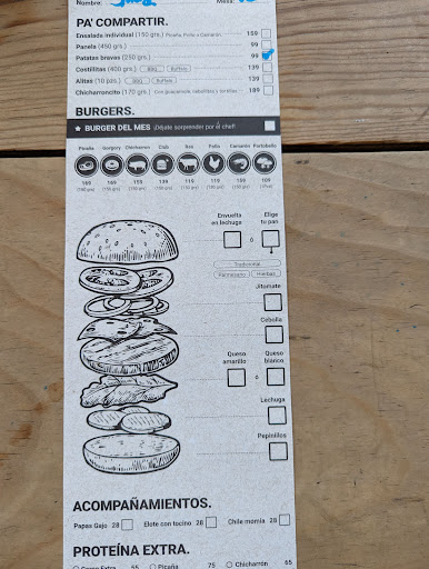 No había tenido oportunidad de ir a comer al lugar, hasta hace poco. Fui en compañía de 3 acompañantes, por lo que pedimos una mesa de 4 y desde el primer momento, fueron muy amables al recibirnos y darnos mesa. Cabe mencionar qué asistimos en un horario de 16 hrs a 19 hrs aproximadamente, por lo que había alta confluencia de personas, pero no había cola de espera, así que nos pasaron inmediatamente. Nos trajeron los menús y el mesero nos preguntó si era nuestra primera ocasión en el lugar, a lo que nosotros respondimos qué - en efecto, así era-. Procedió entonces a explicarnos la manera de ordenar y armar nuestras hamburguesas y platillo extras, cómo entradas y bebidas (otorga esto una mejor experiencia pues tu decides que poner en tu hamburguesa desde la carne hasta los complementos) y a decirnos sobre la hamburguesa especial del mes. Esto es, mes a mes, el lugar va rotando una especialidad (bastante creativa) para darte algo diferente. En esta ocasión tocó turno a una hamburguesa de pastor estilo Sahuayo (espero no estar equivocandome).