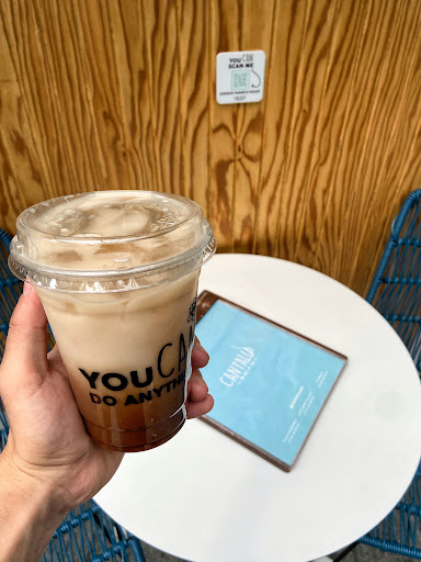 es mi lugar favorito a la hora de comprar cafe, te lo sirven a la temperatura exacta para que te lo puedas tomar apenas te lo entregan sin quemarte, el sabor es exquisito, mi favorito es el latte caramelo, que por cierto ya e pasado por muchas cafeterias y sinceramente es el unico lugar donde lo sirven al punto, el caramelo se unifica perfectamente y sabe a latte caramelo, no a latte "con" caramelo como en muchos otros lugares, asi que no hay necesidad de agregar ningun tipo de azucar porque el caramelo lo incluye, tambien tuve la oportunidad de comer una galleta rellena de chocolate que por cierto puedes pedir que te la entreguen caliente, y su sabor es verdaderamente especial, es como una galleta casera enorme, pero sin demasiado azucar, no empalaga para nada, y cuando llegas a las chispas derretidas es cuando sientes esa fusion de sabores esa explosion de chocolate, y te la entregan envuelta con amor, y con literalmente un sello de calidad, el simple hecho de llegar al local me cambia el estado de animo, me hace sentir feliz, tanto como para dejar pasar a los que tengan prisa primero y disfrutar la espera en ese ambiente tan tranquilo que han logrado, muchas gracias por la...