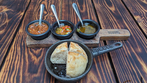 Iniciamos semana y decidímos ir a festejar un 🎂. Bueno llegamos y muy tranquilo en la tarde noche nos asignaron una mesa en medio de lo que es terraza y el área techada. Nos dieron los menús, bueno 1 menú de bebidas y uno de platillos (espérabamos personas). ✅Iniciamos con una limonada pink y una copa de 🍷la casa ( es algo seco, si no eres fan de los secos, no lo pidas, no es de mis favoritos pero con una copa lo supe). Acompañado del panecito de la casa y sus respectivas salsas y aderezos. ❌Entrada de papas boquenses, son papas gajo con aderezo y en medio mermelada de fresa en el aderezo.😬. Es una porción muy pequeña, pidan mejor otra cosa. Y si lo dulce y salado junto no te gusta, mejor pide otra cosa. ✅Una pizza 4 🧀. Muy recomendable 👌🏻. ✅Un provoleta, está muy rico. ✅🥩 Un kilo de carne New York. Tu decidwa el termino y bueno fue de 3/4 a cocida, te la dejan al termino que tu pidas 👌🏻. Ensalada,cebollita asada, chiles verdes asados y tortillas (muy ricas, gruesas y a mano de buen tamaño). Un spaguetti🍝 a la bolognesa que si es para 2 personas pero prefiero la pasta Alfredo, está mejor el sabor, lo recomiendo más. ✅Clericot, buen precio y buena presentación. Buen sabor, hoy me tocó en su punto 👌🏻. ✅Postre, fueron churros con diferentes combinaciones. Chocolate y dulce de leche son los mejores toppings. ✅Un carajillo cumpleañero.