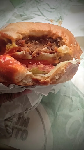 Fuimos a comer en fin de semana (plan familiar) error, AGLOMERACIÓN de personas, por lo mismo los empleados se veían bastante buscando atender a todos los clientes lo antes posible, tanta era su presión qué a la hora de entregar las órdenes el de la barra de alimentos me dice aquí está su pedido, entonces obviamente tomo los tres paquetes qué estaban ahí... Pasan unos 7 minutos aproximadamente 😂😂😂 y en la mesa donde estábamos sentados llega el mismo joven que entrega los paquetes de comida y muy serio y hasta algo molesto me dice porque se llevó los 3 paquetes? Y Yo ya con la hamburguesa y las papas abiertas (me había comido cómo 2 ó 3 papas) y me dice molesto este comida no es usted la de usted solo es el paquete grande mi familia y yo con cara de what 😳 a lo que yo le respondí, momento tú me dijiste esa es su comida Y entonces tú te volteaste y te pusiste hacer otras Yo todavía te pregunté esta es mi comida y tú me respondiste si si... Pues obvio que me la traje a mí mesa (ojo cabe señalar que éramos seis personas y además compramos extras como aros de cebolla chiles rellenos de queso, pay, galletas etc) por eso no nos extrañamos de recibir 3 paquetes con supuestamente nuestro pedido, bueno el chavo me dice me puede devolver esa comida y Yo obvio apenada le regresó su la aburguesa y las papas y se lleva las 2 bolsitas peques con la comida de otra's personas 😅 se imaginan que nos hubiéramos ido a comer a otro lado No, nos encuentra y le hubiese tocado pagar esas hamburguesas ponte chavo 😝 Á y lo feo al abrir nuestra bolsa resulta que venía todo batido mal tapado o,sea los aderezos y me baño toda mi comida y postres 🤷🏻♀️ la verdad sus hamburguesas están sobrevaloradas ALMENOS las de esa plaza no...